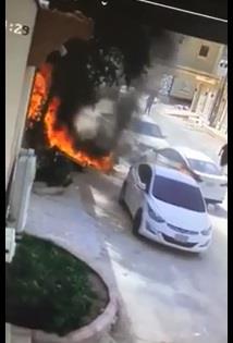 ويظهر مقطع الفيديو نشوب الحريق أمام المنزل ووصول النيران إلى سيارة كانت تقف بجواره، في الوقت الذي لم يستطع بعض الشباب الموجودين في الموقع التعامل مع الحالة وإزاحة المركبة، حتى تدخل شاب بسيارة “ونيت” وأبعد المركبة المشتعلة عن موقع الحريق.