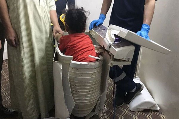 بالصور.. إخراج طفلة محتجزة داخل نشافة غسالة بالطائف