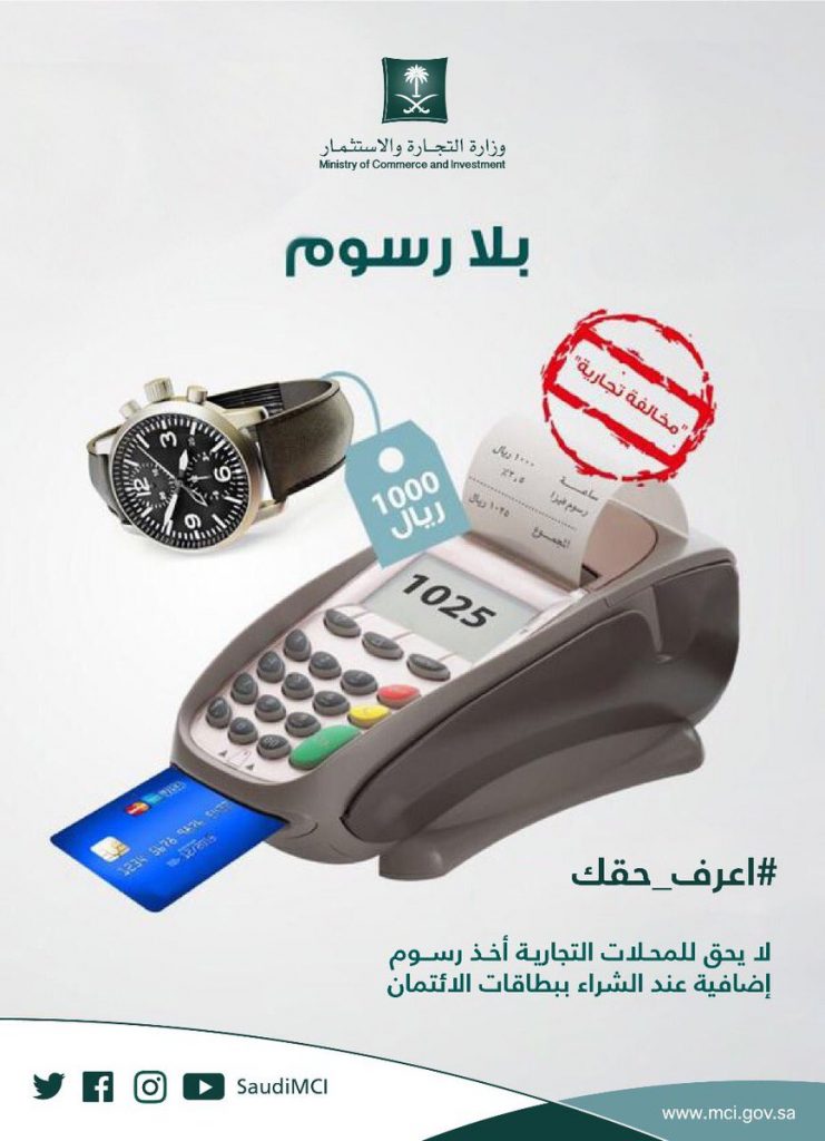 التجارة : لا يحق للمحلات التجارية أخذ رسوم إضافية عند الشراء ببطاقات الائتمان