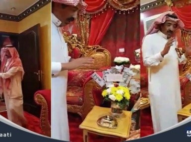 أظهر مقطع فيديو، مواطن يكافئ زوجته بهدية ” متواضعة ” وقبلة على رأسها بعد 36 عامًا من الزواج.