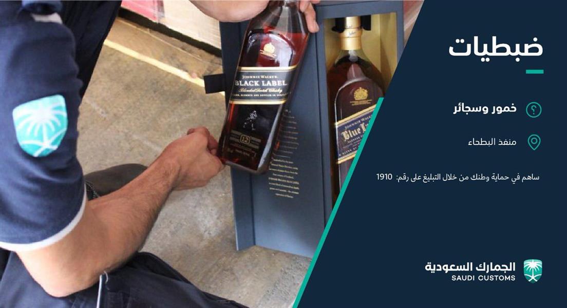 وأوضحت جمارك منفذ البطحاء بأن الشاحنتين كانتا تحويان أكثر من 26 ألف زجاجة خمر..، إضافةً إلى كمية كبيرة من السجائر بلغت 11 مليون و400 ألف سيجارة.