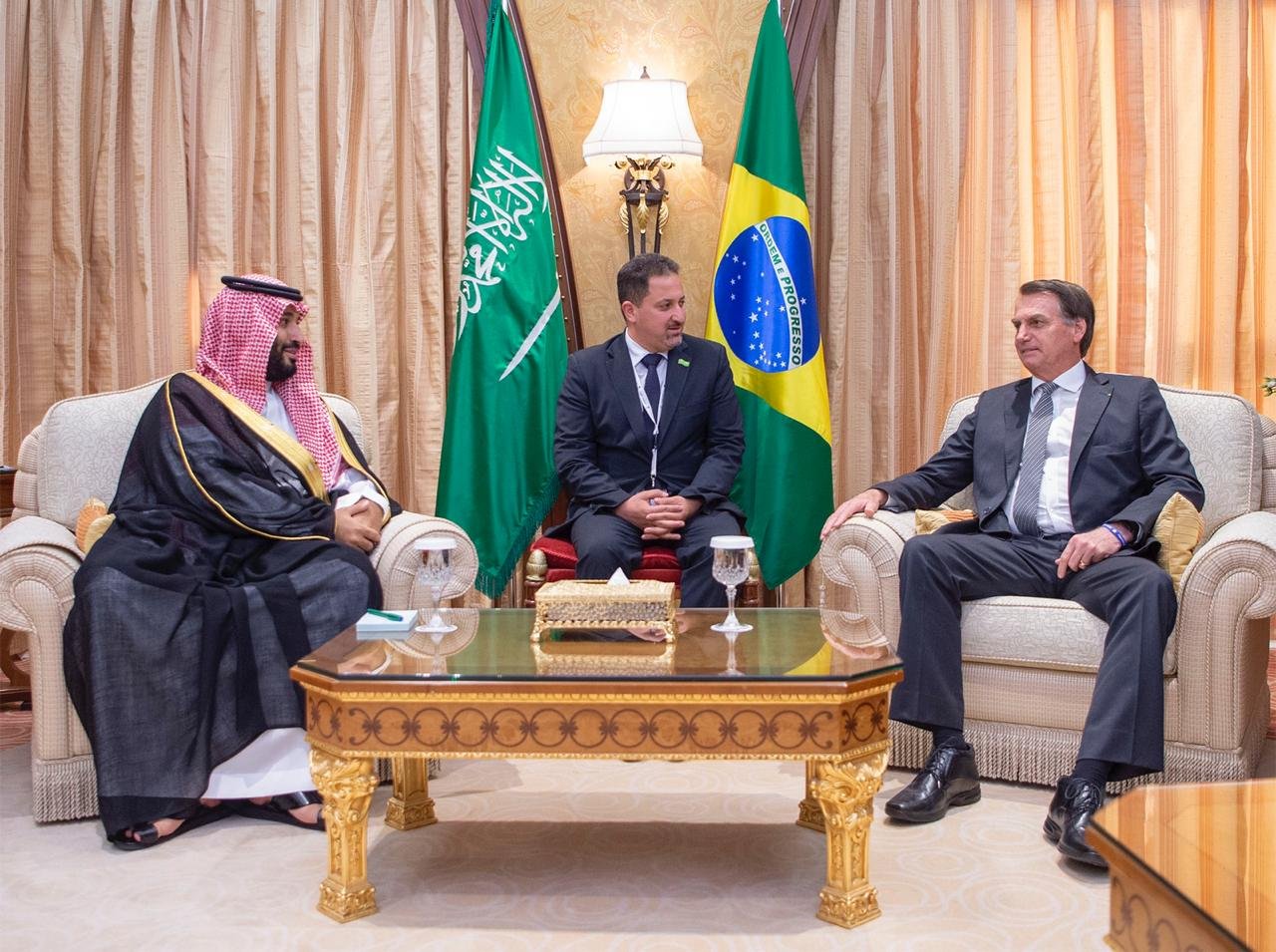 في سياق متصل، التقى ولي العهد، الرئيس جايير بولسونارو، رئيس جمهورية البرازيل الاتحادية، وذلك على هامش أعمال الدورة الثالثة لمبادرة مستقبل الاستثمار 2019، وجرى خلال اللقاء استعراض أوجه العلاقات السعودية البرازيلية، ومجالات التعاون الثنائي، إلى جانب مناقشة عدد من الموضوعات ذات الشأن الاستثماري بين البلدين.