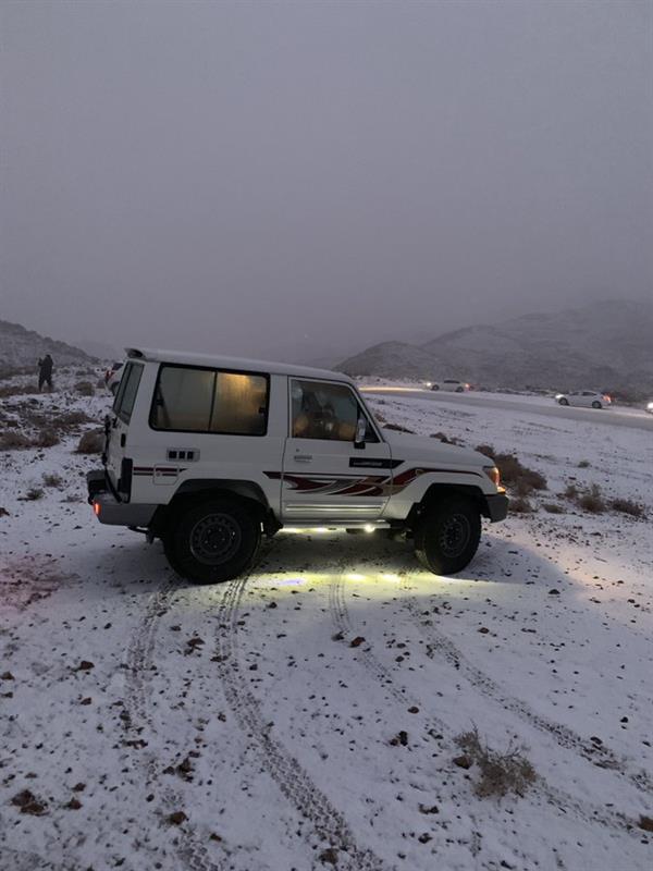 أظهرت مقاطع فيديو وصور متداولة على مواقع التواصل الاجتماعي، جوانب من تساقط الثلوج على بعض الأجزاء من منطقة تبوك، يظهر فيها جبل اللوز بعلقان وقد اكتسى باللون الأبيض.