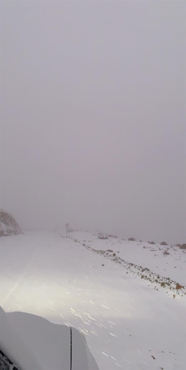 وأظهرت المقاطع بعض المتنزهين وسط الثلوج يستمتعون بالطقس..، كما أظهرت المقاطع الثلوج تغطي الأشجار والمركبات المتوقفة في المنطقة.