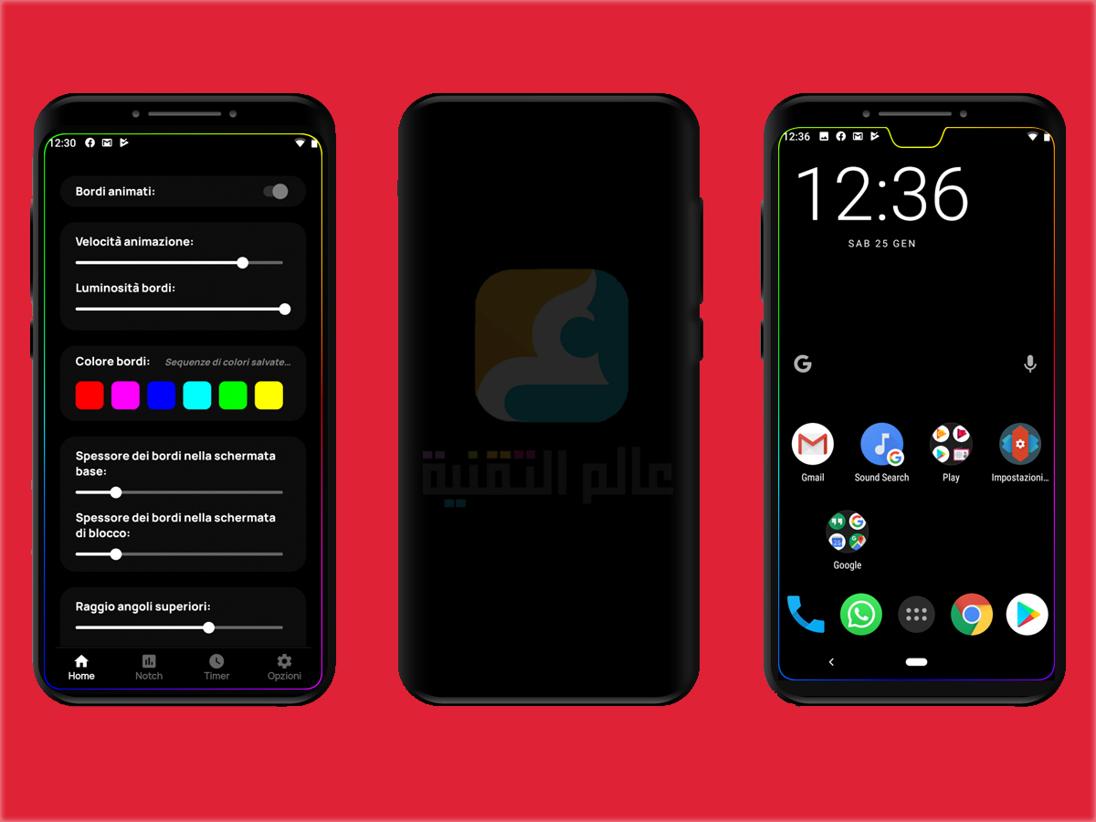 وفي هذا الشأن، لا يُمثّل الشق في بعض الهواتف مشكلة مع التطبيق، كون أن الأخير سوف يتكيّف مع شكل ومكان الشق، علاوةً على ذلك، من الممكن ضبط سرعة الحركة وسطوع الحواف وسمك ونصف قطر الزوايا العلوية والسفلية، كما وهناك امكانية لاختيار نمط الخلفية وضبط المؤقت الذي يسمح لك بتحديد الوقت الدقيق الذي يجب فيه تشغيل وإيقاف الحدود المتحركة تلقائيًا.