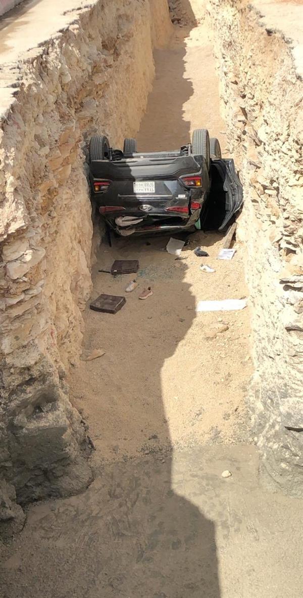 وذكر مواطن يدعى عبدالرحمن العتيق أن السيارة، وهي من نوع “هيونداي”، كانت تستقلها 3 فتيات، وأنها انقلبت رأساً على عقب داخل حفرية تابعة لأحد المشاريع، مبيناً أنه تم إسعاف الفتيات ونقلهن إلى المستشفى لتلقي العلاج.
