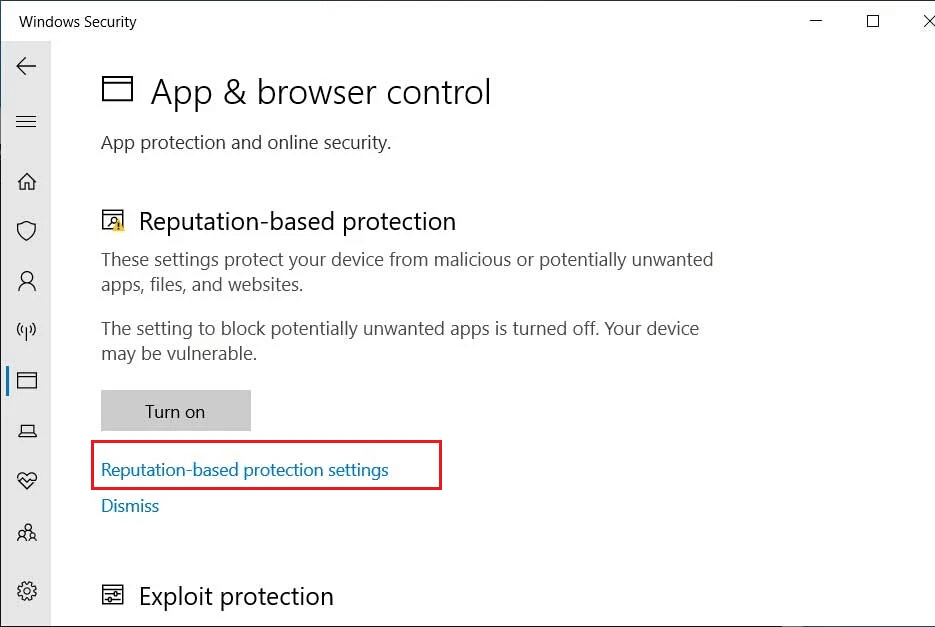 - اضغط على خيار (Reputation-based protection)؛ ثم فعِّله من خلال الضغط على زر التبديل الموجود أسفله.