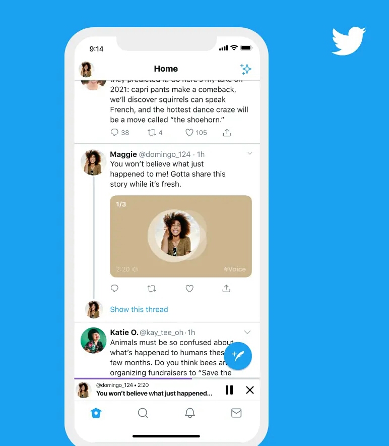 وقال تويتر في تدوينة: “تويتر هو المكان الذي تقصده للحديث عما يحدث الآن. وعلى مر السنين، سمحت لك الصور، ومقاطع الفيديو، والصور المتحركة GIF، والحروف الإضافية بإضافة ذوقك وشخصيتك إلى محادثاتك”. وأضاف: “لكن في بعض الأحيان لا يكفي 280 حرفًا. لذا بدءًا من اليوم، نختبر ميزة جديدة تضيف لمسة أكثر إنسانية إلى طريقة استخدامنا للتغريد – صوتك الخاص”.