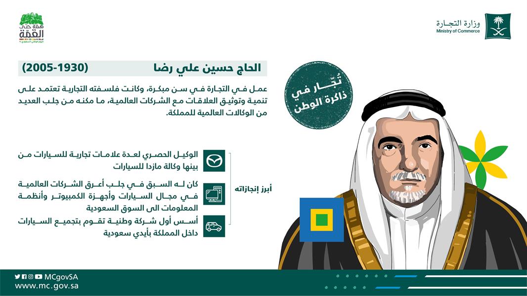 ولفتت إلى تأسيس حسين علي رضا أول شركة وطنية تقوم بتجميع السيارات داخل المملكة بأيدٍ سعودية، وتأسيس عبداللطيف علي العيسى أول سوبر ماركت في المنطقة العربية بالتعاون مع إحدى الشركات الأمريكية.