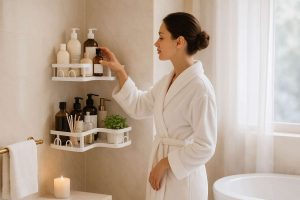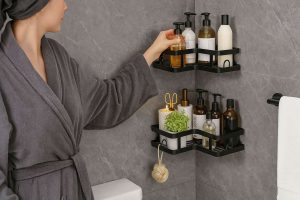 رفوف حمامات زاوية لاصقة – لمسة تنظيمية ذكية بديكور عصري