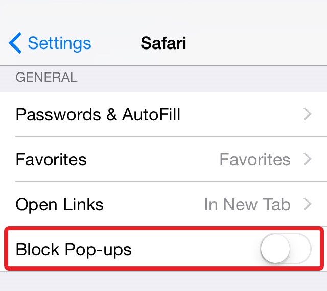 أقفل "حظر الإطارات المنبثقة" أو "Block pop-ups"